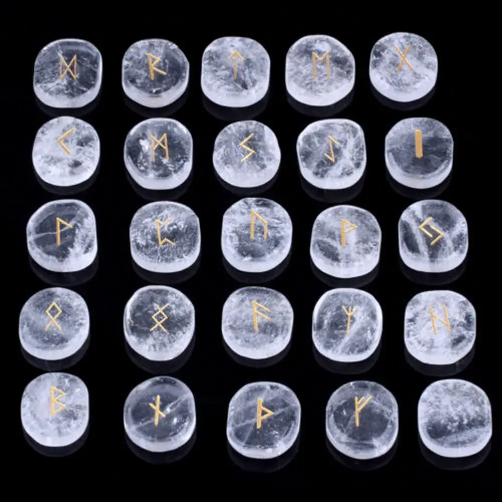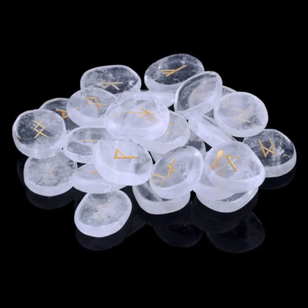 BEST QUALITY Natural Engraved Rock Clear Quartz Crystal Rune Divination Stones Set Gemstones Feng Shui Decoratio