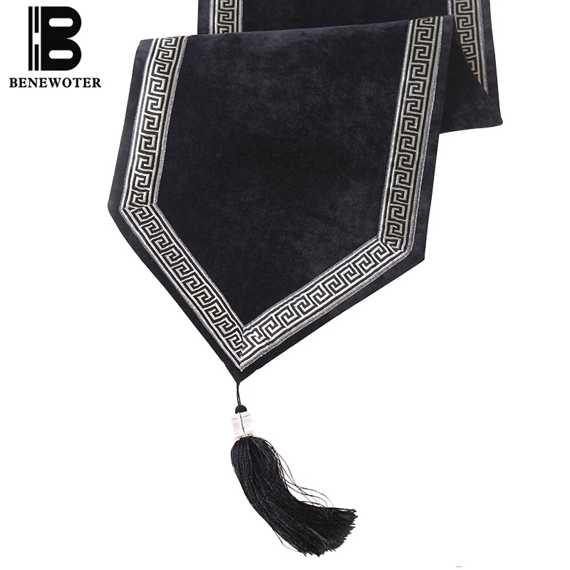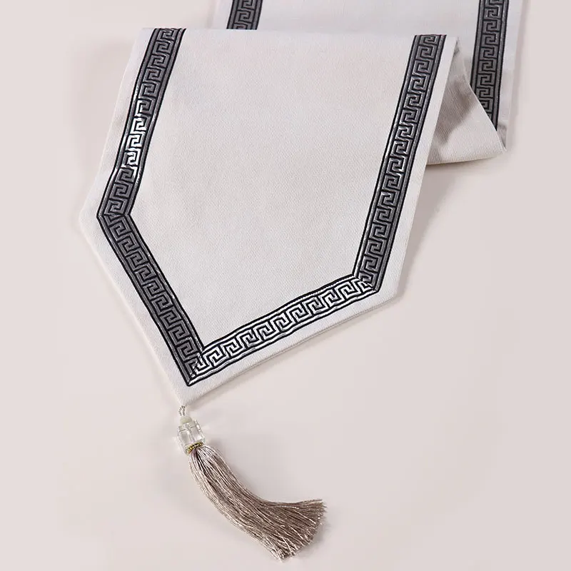 Luxurious European Style Tassel Table Runner Brief Classical Black and White Bed Flag Wedding Resta