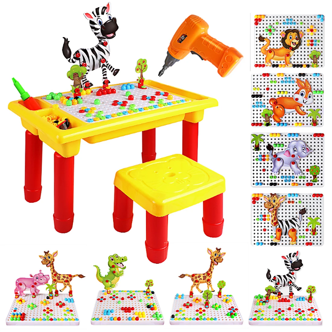 BEST Children Pretend Play Electric Drill Screwdriver Disassembly Toy Wooden Table Assembly Playset Occu